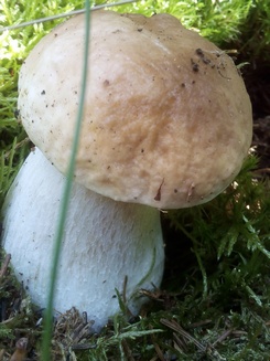 Foto: Beim Spielen mit den Kindern entdeckte Sebastian viele kleine Steinpilze. Vier Tage später landeten die inzwischen großen Pilze im Kob. (Foto © Sebastian)