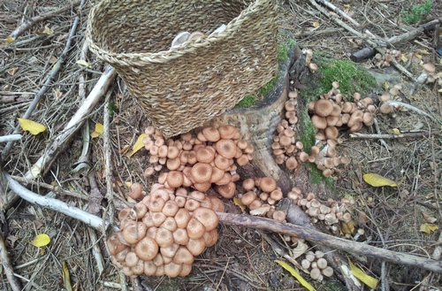 Foto: Junge knackige Hallimasche in korbfüllender Menge fand Lars ebenfalls. Vorbildlich, dass er als Anfänger offen für soviel Vielfalt ist - und nicht nur Steinpilze und Maronenröhrlinge mit nach Hause nahm.