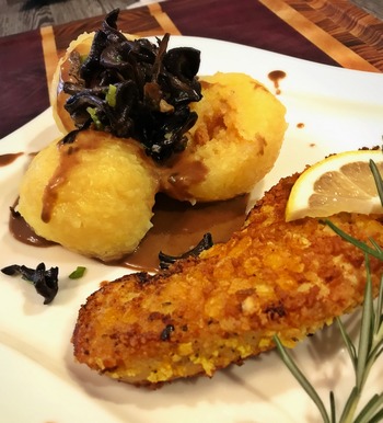 als Grundlage zu Kartoffelknödeln mit Putenschnitzel und kurz