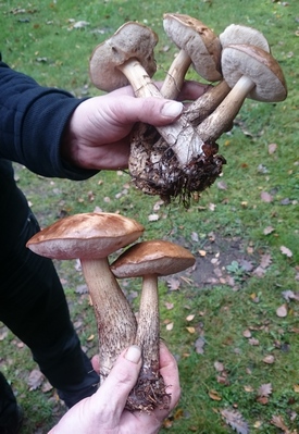 Und dieses Mal sollten wir das Glück auf unserer Seite haben! Reichlich junge knackige Maronen, einige Birkenpilze (Foto rechts), Schopftintlinge und Parasole und sogar einen Bilderbuch-Steinpilz konnten wir finden.