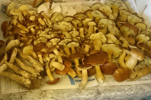 Die Vielfalt an Pilzen hat sich in den letzten Tagen vergrößert. Bei uns war die Temperatur tagelang unter 10 Grad, weshalb Steinpilze und die kleinen schwarzen Maronen möglicherweise nicht wachsen.
