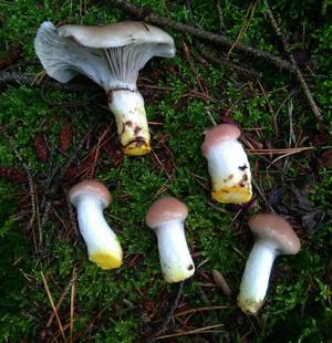 Was mich dazu noch freute, war, dass ich endlich einmal das Kuhmaul (Foto rechts) gefunden habe, ein sehr eigentümlicher Pilz. Ich fand den Geschmack doch leider etwas zu säuerlich. Daneben fand ich noch Butterpilze und Maronen sowie Grünspanträuschlinge. Diese zu probieren habe ich mich dann aber doch nicht getraut.