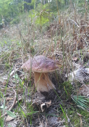 Foto: Sie standen Spalier! So beschreibt Johannes das Auftreten der vielen schönen Steinpilze, die er am Greifswalder Bodden gefunden hat. Und zwar dank der Schnippelreste eines Konkurrenten, die ihn freundlicherweise zu der Stelle geführt haben. (3 Fotos © Johannes)