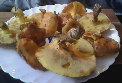 Foto: Diese Goldröhrlinge gehörten auch zu seinem Fund. Am besten, man zieht die vom Regen verschmierte Huthaut ab, das reinigt den Pilz und macht ihn gleichzeitig magenfreundlicher. (2 Fotos © Saasch)
