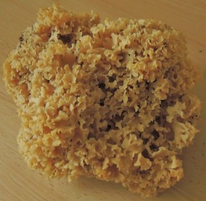 schiebend, entdeckte ich eine Krause Glucke (Foto rechts). Diese Pilzart habe ich