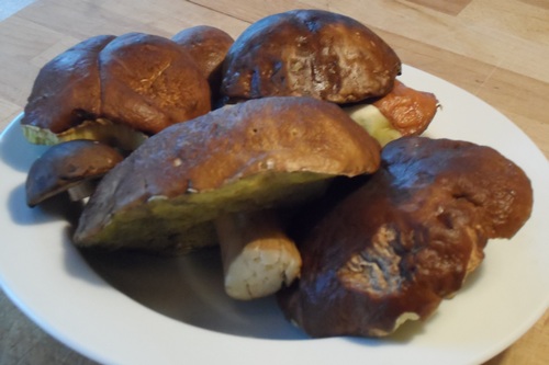 Foto: Richtig kernige Steinpilze hat Helga am Elisabethfehnkanal in Ostfriesland gefunden. Man sieht ihnen die Spitzenqualität an! (Foto © Helga H.)