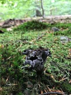 Die Steinpilze wollen noch nicht, dafür gab es aber die letzte Nachlese von meinen geliebten Herbsttrompeten. Immer noch reichlich stehen Trompetenpfifferlinge. Sehr gefreut habe ich mich über die Entdeckung einer kleinen Pfifferlingsstelle; Pfifferlinge sind rar im Deister.