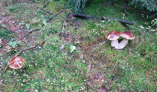 Wenn das Wetter es morgen zulassen sollte, möchte ich noch mal diesen Bereich ansteuern, gehe aber davon aus, dass am Wochenende Sammler nachgewachsene Steinpilze holen, so dass mir wohl nur eventuell weitere Mönchsköpfe bleiben werden. Die finde ich kross gebraten mit ein bisschen Salz aber auch sehr lecker.
