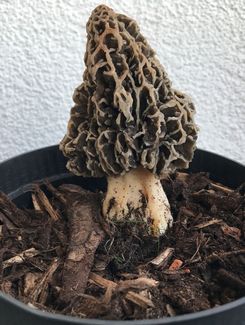 Foto rechts: Nein, sie wuchs nicht etwa im mit Mulch gefüllten Blumentopf, wie man vermuten könnte. Pilzfreund Uwe hatte diese Spitzmorchel aus Nachbars Mulchbeet am Rande der Eilenriede in Hannover freundlicherweise geschenkt bekommen. Jetzt sind alle gespannt, wie's weitergeht: "Ist es vielleicht der Vorbote einer ganzen Rasselbande oder bleibt es bei einem Soloauftritt", so Uwe, dem es nicht an Mulchflächen mangelt. Wir kennen ihn mit seinen Pilznachrichten aus Berkhof/Wedemark und gönnen ihm einen Aufmarsch der Zipfelmützen! (Foto © Uwe) 21. April 2021 Pilzticker Niedersachsen 61 |
