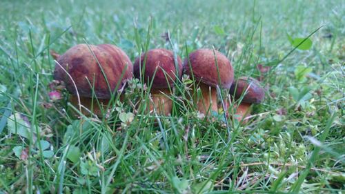 Sollte uns ihr Talent, uns Glück einzutragen, dieses Mal wirklich im Stich lassen? Mit solchen Gedanken trug ich mich, als wir zum Auto zurückgingen. Ein paar hundert Meter vor dem Ziel, der Parkplatz war schon in Sichtweite, sagte meine Frau mit einem Mal: "Du, es gibt doch Pilze. Da schimmert was durch das Gras!"