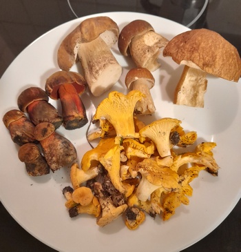 Letztes Jahr hatte ich trotz Dauertrockenheit in der zweiten Juli-Woche das erste Mal schon einen gut gefüllten, bunten Pilzkorb mit Steinpilz, Maronen, Filzröhrlingen, Goldröhrlingen und Täublingen.