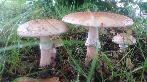 Foto: Nicht minder eindrucksvoll sind diese vier schönen Perlpilze mit ihren Röckchenmanschetten.