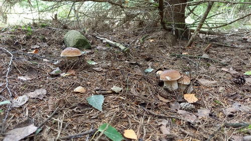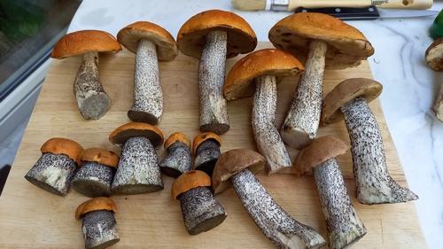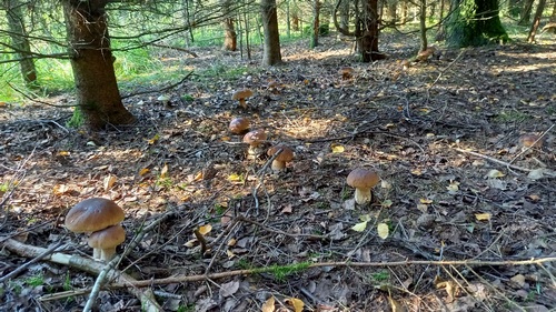 Foto: An dieser Station herrscht ein wahres Gewimmel von Birkenpilzen. Sebastian konnte sich die Schönsten aussuchen.