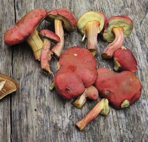 Foto rechts: Diese Blutroten Röhrlinge hat Gisela aus Hannover am 5. September auf einem Grünstreifen am Mittellandkanal entdeckt. Die Pilzart war für sie ein Erstfund. Daneben sammelte sie noch einige Rotfußröhrlinge bzw. das, was die Maden von ihnen übrig gelassen hatten.