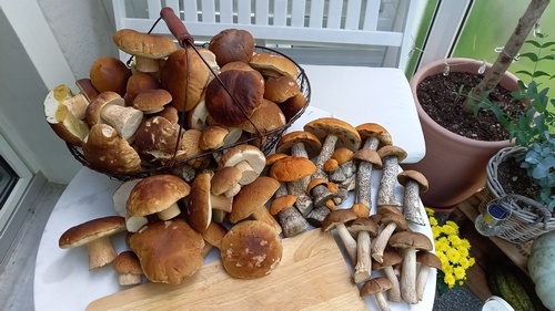 Es war wie im Schlaraffenland. Ich musste wieder aufhören, weil mein Korb voll war. So konnte ich gar nicht alle Bereiche abgehen, wie ich es sonst mache. Leider waren aber viele knackfrisch aussehende Pilze bereits madig, so dass mir häufig nur der Hut blieb. Trotzdem bin ich mit der Ausbeute bisher sehr zufrieden.