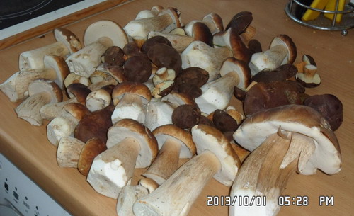 Zu meinem großen Erstaunen gab es heute noch einmal 7,3 Kilo Steinpilze für mich, die netto stolze 5,9 Kilo ergaben. Ich habe die Steinpilze in feinstem Zustand vorgefunden!