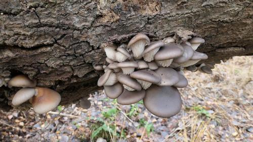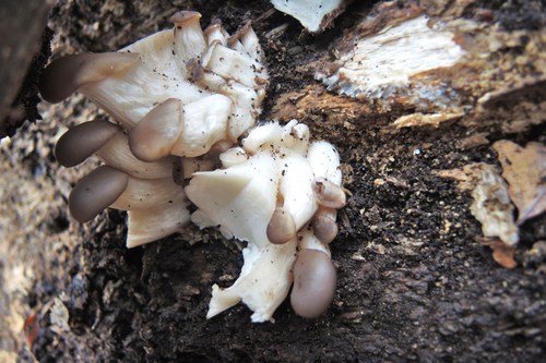 Foto: Nur die Großen wurden mit nach Hause genommen, die kleinen Austernpilze ließ Christine zum Weiterwachsen stehen. (2 Fotos © Christine)