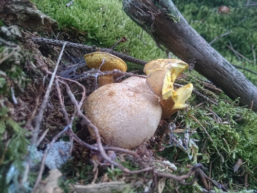 zumindest ein paar Goldröhrlinge im Lärchen-Fichten-Wald. Ausserdem fand ich Massen an Kartoffelbovisten, auch große Exemplare mit über 8cm Durchmesser.