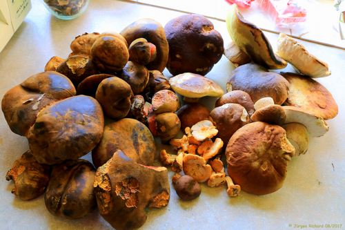 Und siehe da, ein Dutzend madenfreie Steinpilz fanden wir, dazu einige Pfiffers und Hexen. Hat sich für gut eine Stunde wohl gelohnt. :-)