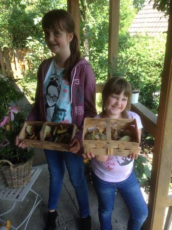 Foto rechts: Man sieht es Achims Kindern an: Die Pilzwanderung hat ihnen Spaß gemacht - und am Erfolg fehlte es auch nicht. (Foto © Achim)