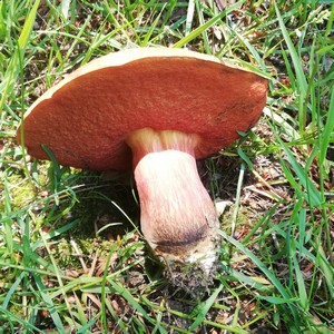 Fundort war eine alte Festwiese oberhalb von Hückelhoven, auf der er mutterseelenallein unter einer Eiche wuchs. Es ist ein Flockenstieliger Hexenröhrling. Das hat mein Herz als Pilzsammler wieder in Gang gebracht, so dass ich nun auf ein wesentlich besseres Jahr als 2018 hoffe.