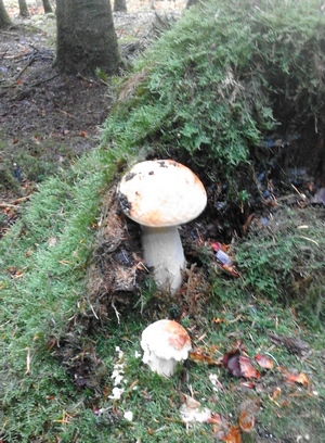 Ein lustiges Motiv boten zwei Steinpilze, von denen einer Huckepack genommen wurde (Foto links). Ein kleiner dritter stand noch dabei und beobachtete die Zwei. Er hat sich bestimmt kringelig gelacht.