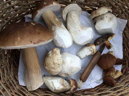 Foto: Tägliche Steinpilz- und neuerdings auch Maronenernte für Achim: neben frischer Luft und Bewegung trägt ihm seine Routinerunde auch leckere Gerichte ein. (Foto © Achim)