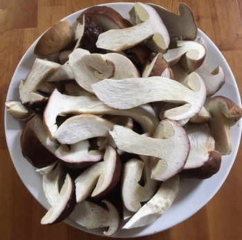 heutigen Fund (Foto rechts: Steinpilzhälften) an.
