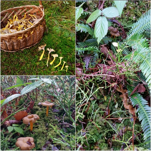 Wir haben Violette Rötelritterlinge, Pfefferröhrlinge, Pfifferlinge, Braune Raslinge und EINE Marone gefunden. Nur der Trompetenpfifferling, den es letztes Jahr in Massen gab, wächst so gut wie gar nicht.