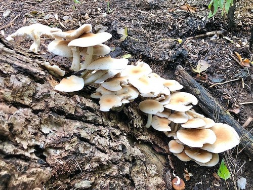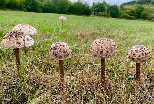 Auch Parasolpilze sahen wir häufig. Die Steinpilze wachsen momentan in unserer Gegend meist in Eichenwäldern. In der Nähe eines Steinpilznestes fand ich noch eine kleine Breitblättrige Glucke, die wir aber stehen ließen. Zu unserer Freude fand Margit abschließend noch herrliche Stockschwämmchen.