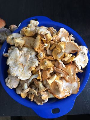 Die Stoppelpilze, reichlich Pfifferlinge und die Rotkappe gehen an unseren Nachbarn.