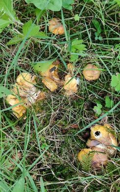 Nachmittags haben wir in der Nähe dann eineinhalb Kilo Amethystschuppige Pfifferlinge, Blasse Pfifferlinge und Samtpfifferlinge gefunden (2. Foto rechts).