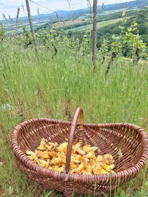 endlich war es soweit, die ersten Pfifferlinge fand ich am Morgen in unserem Heimatwald, in der Nähe von Hallgarten, in südlicher Hanglage mit sehr kalkhaltigem Boden. Hier wachsen manchmal auch Sommersteinpilze. Es war nicht viel, aber es reichte für ein erstes kleines Pilzgericht.