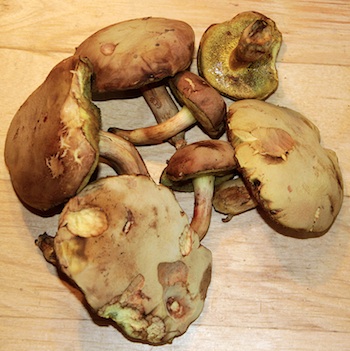 In einem lichtdurchfluteten Nadelwald wuchsen allerhand Perlpilze und Anischampignons. Die Maronenröhrlinge haben in unseren neu entdeckten Soonwald-Gebieten viel dickere Stiele als in den Wäldern westlich der Nahe. Die Goldröhrlinge wuchsen auch an verschiedenen Stellen, allerdings nur im feuchten Moos und, wie es sich gehört, ausschließlich bei Lärchen.