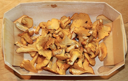 Zuerst die frisch gesammelten Pfifferlinge mit Wasser abwaschen, weil sie oft Sand oder Waldboden binden.