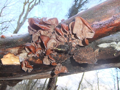 Heute Mittag suchten wir in der Nähe von Bad Kreuznach in einem steilen Mischwald nach Winterpilzen und wurden auch prompt fündig.