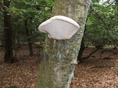 Und wer sagt es! Wir fanden ganz frische Birkenporlinge, typischerweise an grün bemoosten Birken. Ein Schiefer Schillerporling umschlang über die Hälfte eines Birkenstammes.