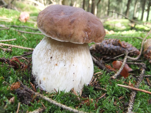 Foto: Er lebt auf dickem Fuße. Ein prachtvoller junger Steinpilz, dessen hartes Fleisch man schon beim Anblick beinahe fühlen kann.
