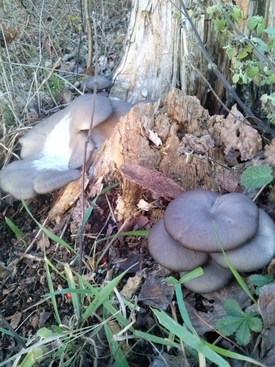 Bereits am Samstag war ich mit Margit ebenfalls bei Lemberg unterwegs. Auch da konnten wir die herrlich duftenden bläulichen Austernseitlinge finden. Das ist gar nicht so schwer, denn wir merken uns das ganze Jahr über, wo sich alte oder abgesägte Laubholzstümpfe befinden und suchen sie ab, wenn die Zeit gekommen ist.