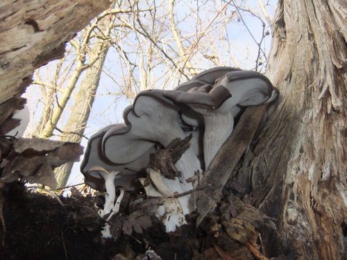 Da ich sehr viele frisch umgefallene Bäume fand, die dem Austernseitling als Wirte dienen können,