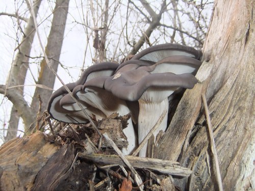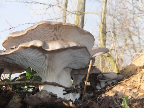 Nach unserem Eindruck war es in der letzten Zeit zu warm, weshalb die Austernpilze sehr früh erschienen und in der Wärme wohl auch schneller vergingen. Wenn es gefriert, wachsen sie langsamer, halten länger und so haben wir Pilzsammler mehr Zeit, sie einzusacken.