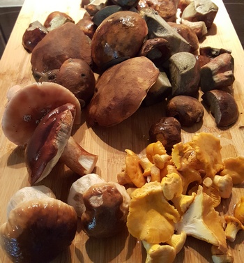 In strömendem Regen ging es mit meiner Freundin und unseren Töchtern durch den Wald. Die Vielfalt ist groß und nach einer Stunde waren die Körbe zu unserer Zufriedenheit gefüllt. Da wir bis auf die Knochen durchnässt waren, haben wir den Ausflug beendet und sind zum Kochen nach Hause gefahren.
