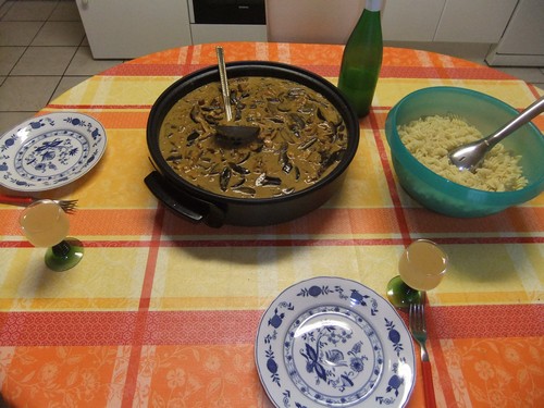 Von dem Fund bereitete uns Margit eine herrliche Mischpilzpfanne mit Spiralnudeln. Dazu gab es einen herrlichen Federweißen, der sich wie die Pilze in der Pfanne im Bestzustand befand.