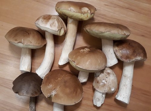 acht prachtvolle Steinpilze und ein Birkenpilz (Foto oben).