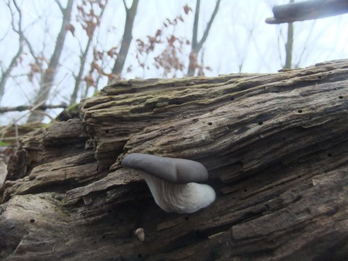 Nach diesem denkwürdigen Waldgang war ich am Neujahrstag dann nochmals alleine auf der Pilzpirsch und fand meinen ersten bläulich schimmernden Austernpilz mit einem kleinen Geschwisterchen. Und zwar an der Sautränke, die ja einer meiner zuverlässigsten Austernpilzplätze ist. Sie befindet sich kurz vor dem Gipfel des Lemberges bei Feilbingert.