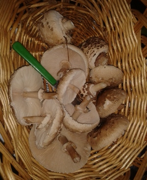 Foto: Siegfried freute sich zwar über Parasole, doch die hier gezeigten Pilze sind allesamt Safranschirmlinge. Aber die schmecken bekanntlich ebenso gut. (2 Fotos © Siegfried)