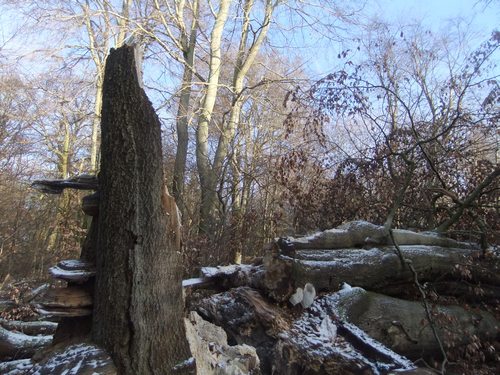 dem Mittagessen am Sonntag beschloss ich, meiner abgestorbenen, aber noch aufrecht stehenden Rotbuche im Laubwald bei Feilbingert einen Besuch abzustatten.