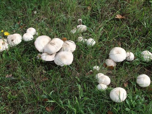 Foto: Einen verheißungsvollen Auftakt boten die Wiesenchampignons am Waldrand, die, wie man sieht, in Platzwettkämpfe verstrickt waren.