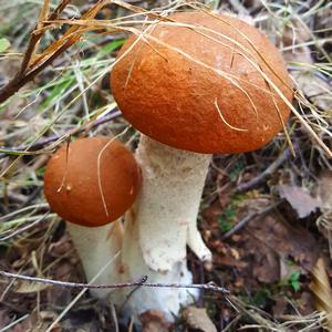 Foto: Es waren die ersten Rotkappen überhaupt, die Markus in seinen Pilzrevieren im Landkreis Altenkirchen im Westerwald entdeckte. Und es waren, wie die Orangetupfer am Stiel zeigen, Laubwaldrotkappen. Die anderen Rotkappen sind braun, schwarz oder grau geschuppt.