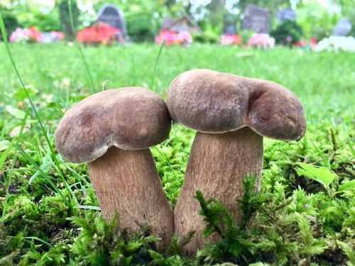 Foto: Doppelt hält besser. Zwei prächtige Sommersteinpilze. Sie wachsen bei einer Eiche und einer Linde. Sommersteinpilze können mitten in der Stadt unter Linden wachsen, sofern die Bäume mindesten um 100 Jahre alt sind.